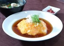 ふわふわの卵に酸味の効いた甘酢餡がたっぷりかかった天津飯。